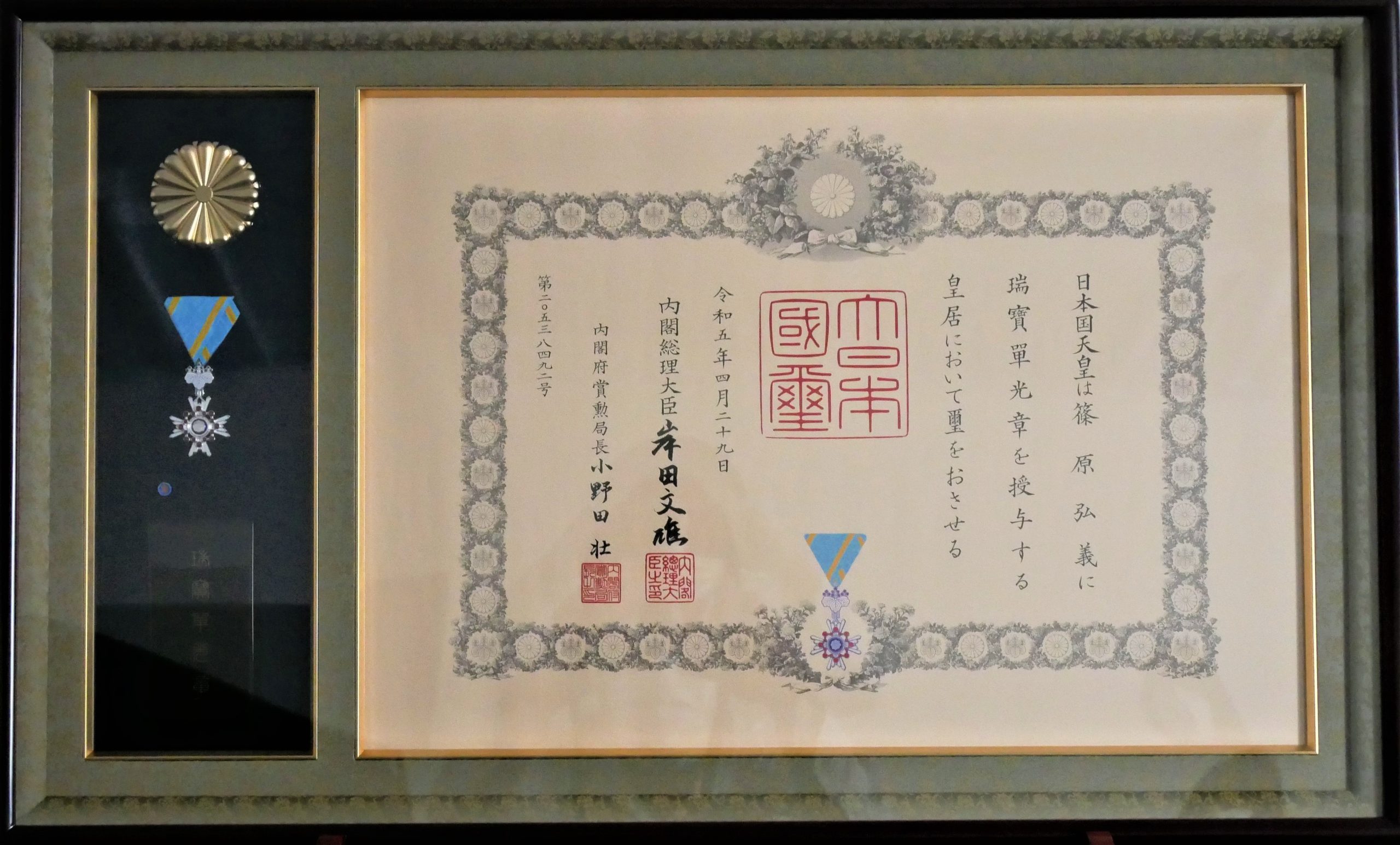 令和5年 春の叙勲「瑞宝単光章」を受章しました。